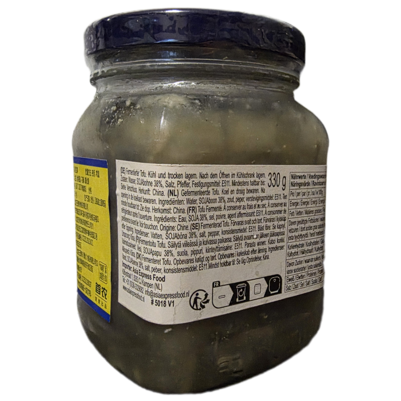 | Zutaten | Wasser, Sojabohnen 38%, Salz, Pfeffer, Festigungsmittel: E511. |